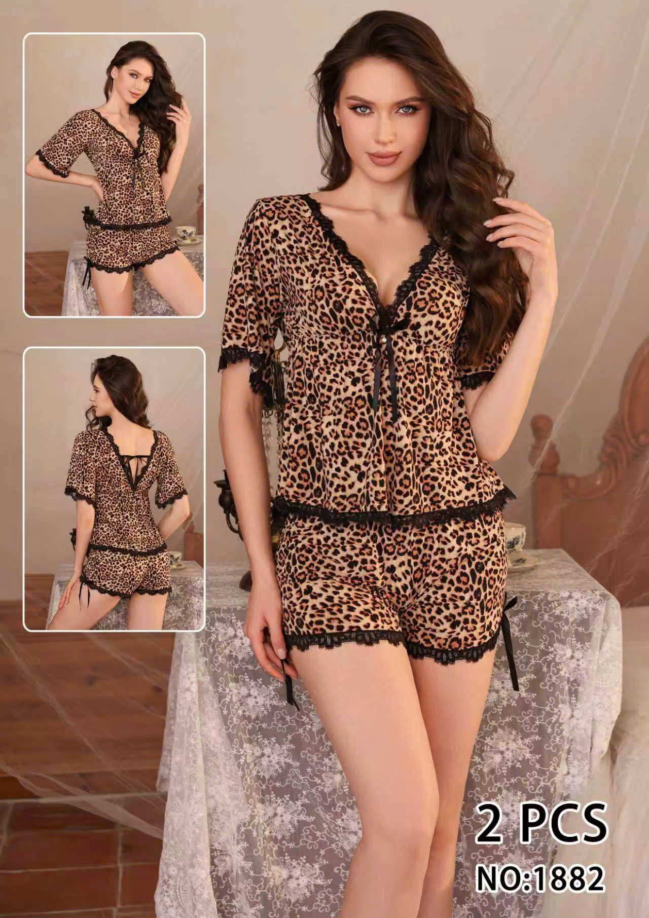 Bộ đồ ngủ ngắn tay màu nâu Mã 18819
