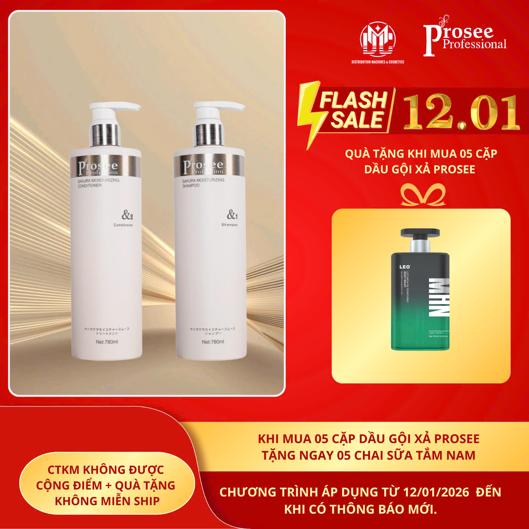 [Mua 5 cặp PS2/PC2 tặng 5 chai sữa tắm Prosee 500ml PM7] Cặp dầu gội xả PROSEE Sakura Moisturizing 500ml( dầu gội dành cho tóc dầu bết dính chống rụng)