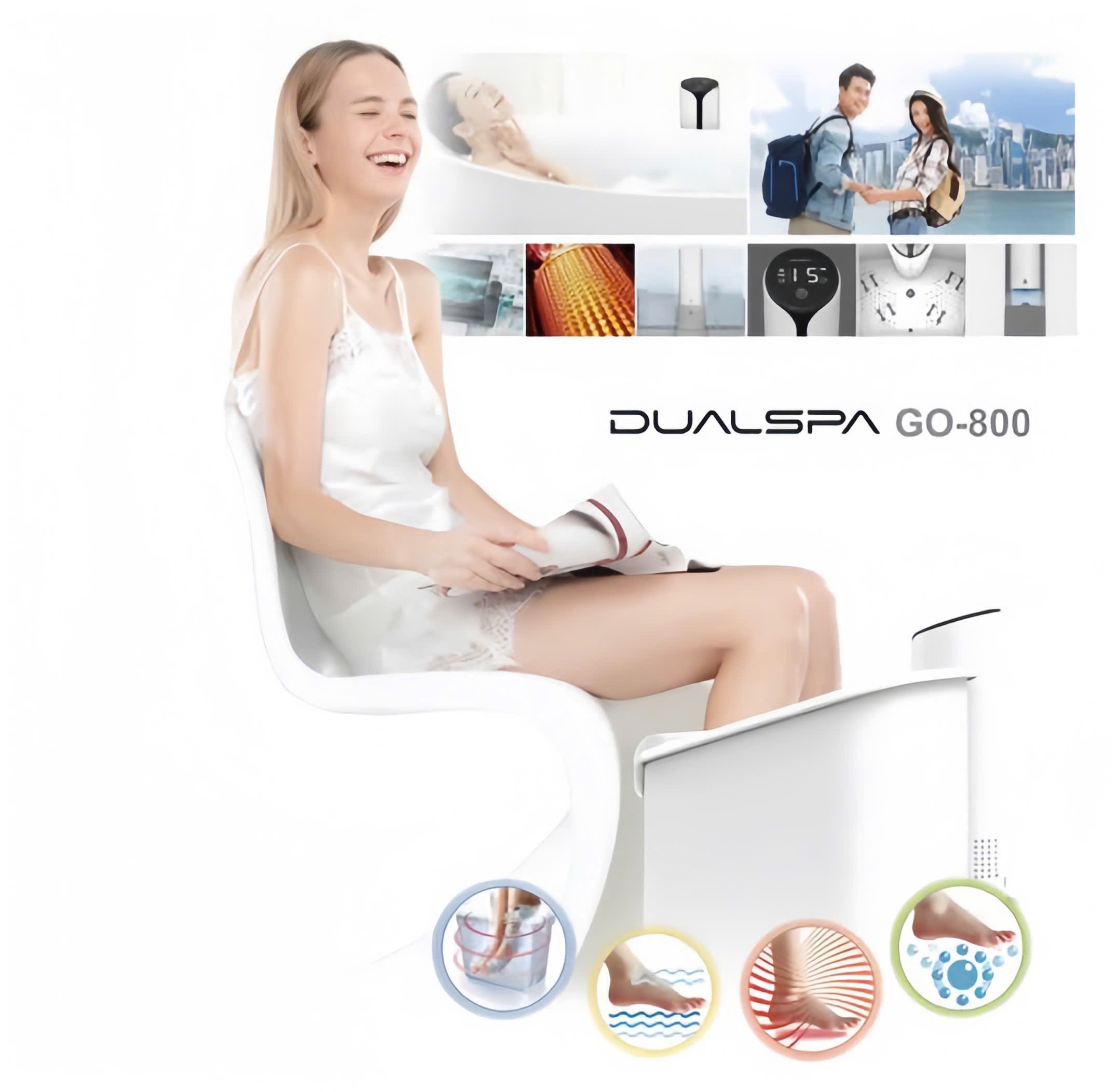 DUALSPA có thể kết nối với ứng dụng mini trên WeChat - Juqing Moya, cho phép điều chỉnh các chế độ: nhiệt độ, thời gian, mức độ bọt khí… dễ dàng qua điện thoại. - Massage bong bóng nhẹ nhàng: